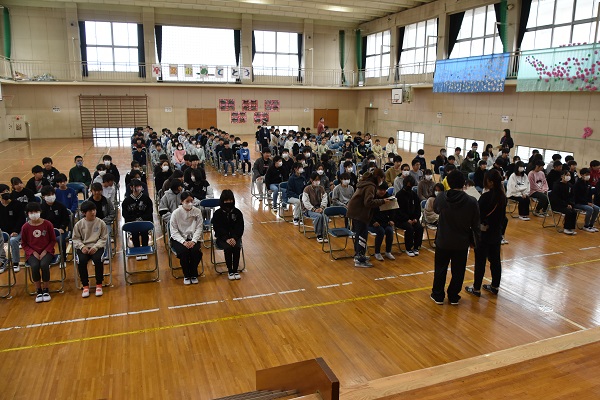 今日は5,6年生合同の卒業式練習がありました。今回は式中の言葉や歌の練習が中心でした。どちらの学年も、儀式に臨む気持ちをしっかりと持って練習していました。卒業式に向けて、あと一頑張りです。