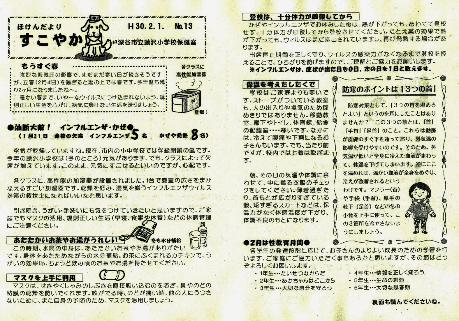 保健委員会では、かぜの予防対策として