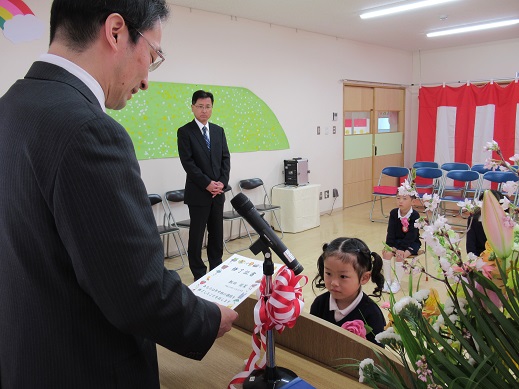 緊張しながらも、園長先生から一人ずつ修了証書を手渡していただき、「ありがとう!」と返事ができました。