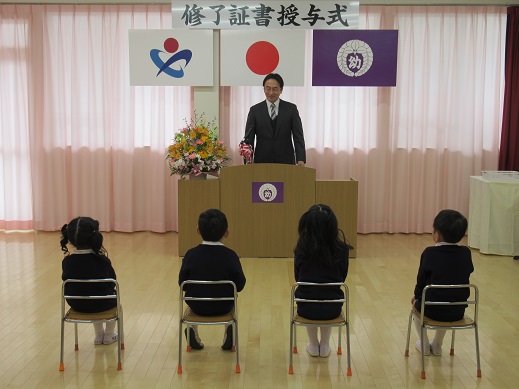 園長先生の話を聞く姿はとても立派で、この一年間の成長が感じられた修了式となりました。