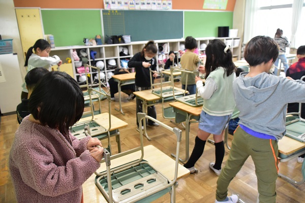 修了式前日のクラスの様子を紹介します。来年度に向けての準備が始まっています。