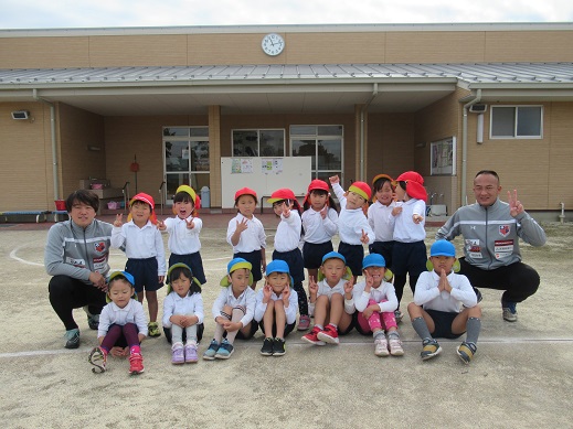 今日は、サッカー教室です。大宮アルディージャからコーチが来てくれました。