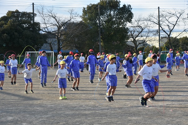 2月に実施するなわとび大会に向けて練習が始まっています。子どもたちは体育や休み時間に練習しています。今日の業前運動は、2,4,6年生のなわとびの時間でした。みんな一生懸命に跳んでいました。