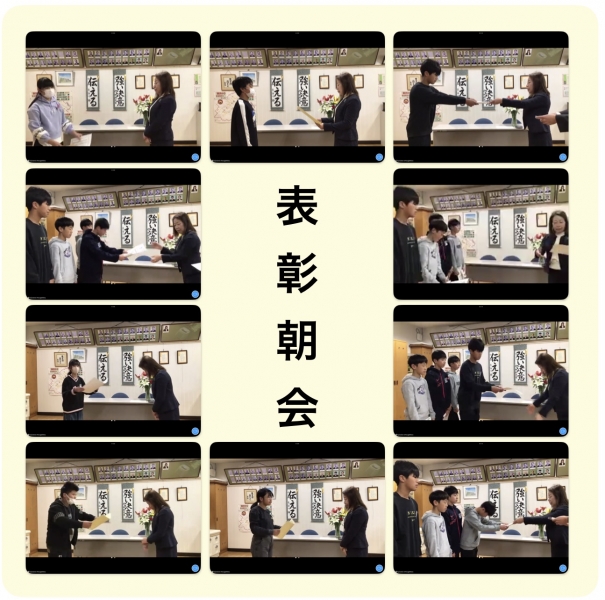 昨日の全校朝会では、表彰が行われました。様々な場面で活躍した皆さんが受賞しました。代表で賞状を受け取った皆さんの態度は、全校の手本となるものでした!素晴らしい!残り少ない小学校生活の中にも賞状をいただく機会はたくさんあります!全ての機会に全力で取り組むことができると良いですね!