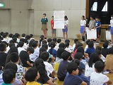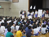 5年生・6年生が毎日活動を行っている委員会の紹介を行いました。活動の内容が全校児童に分かるように、委員長さんが発表してくれました。自分たちの学校をよりよくしていこうという意欲がみんなに伝わりました。