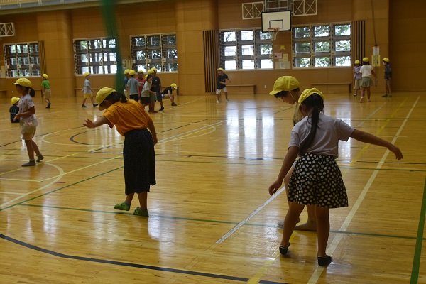 〇公民館長さんにお話を聞きました。〇畳のお部屋もありました。 〇体育室で遊びました。