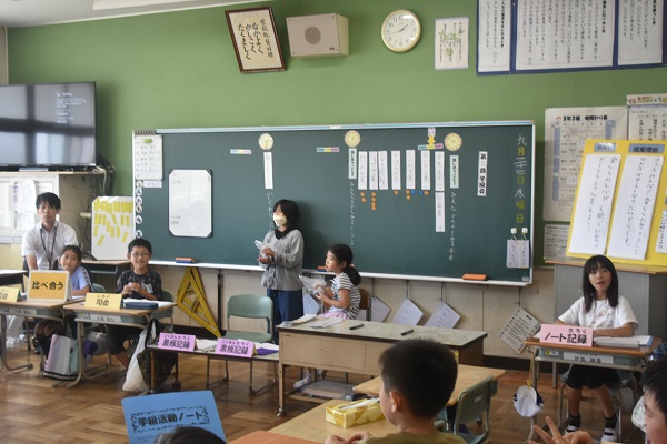 〇3年3組の学級会が公開されました。〇しっかりと発言できています。〇授業研究会の様子です。