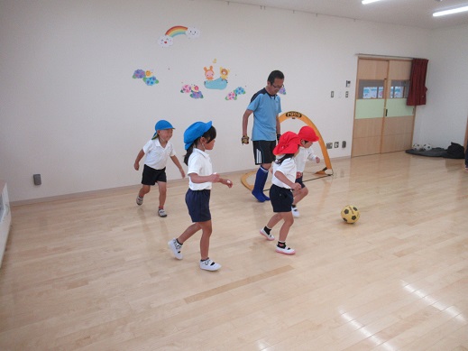 コーチには、狭い室内でも楽しめるように工夫していただき、今年度2回目のサッカー教室も楽しく過ごすことができました!