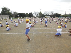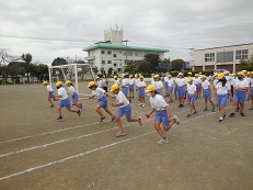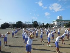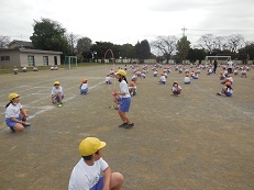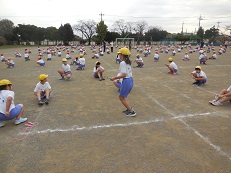 秋らしい朝を迎え、子どもたちは体育着に着替えると外に出て