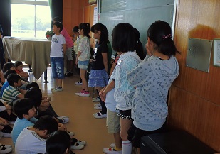 2時間目に、学年で集まりました。  各クラスの運営委員・代表委員が前に出て、 抱負を述べました。 「にこやかにあいさつができる学年にしたいです。」 「やさしい行動ができる学年にしたいです。」 「協力し合える学年にしたいです。」 さすがリーダー!よく考えています。  続いてお待ちかね、林間学校説明会です。 連休で準備を始めましょう! 持ち物と、カレー作りの練習もね  ※家庭訪問ではお世話になります。 林間学校に向けての健康調査票もお願いします  |