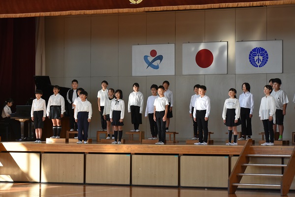 〇始まる前に記念撮影…ちょっと緊張気味 〇全体合唱は”もみじ” しっかり口が開いていて