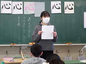 書きぞめでも書いた「心」を練習して、素敵な作品に仕上げていきます。
