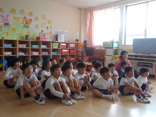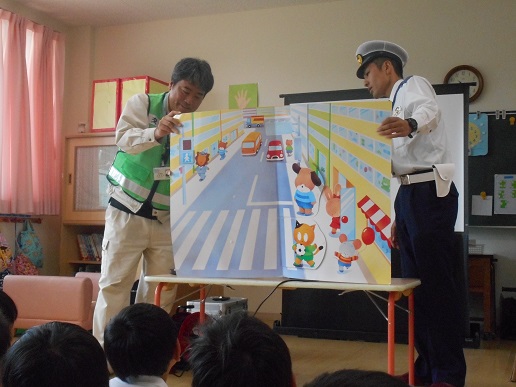 そのあとは、園庭で横断歩道を渡る練習をしました。