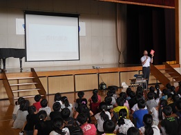 今日の全校朝会は、校長先生による本の読み聞かせでした。少々難しい