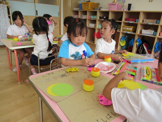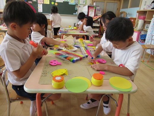 9月13日(金)に行われる幼稚園説明会で、未就園のお友達に園児から手作りのプレゼントをすることになりました。