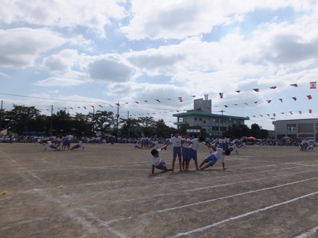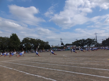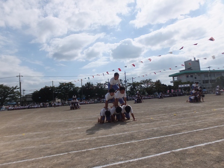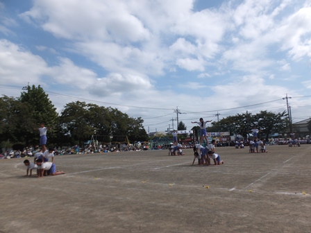 組体操です。真剣な態度で取り組む5年生。すばらしい演技でした。