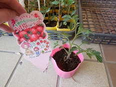 今日は2年生全員で、昨日届いたトマトの苗を自分の鉢に植えました。