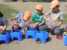 「早く大きくならないかな~」と楽しみにしているようで、早速水やりを