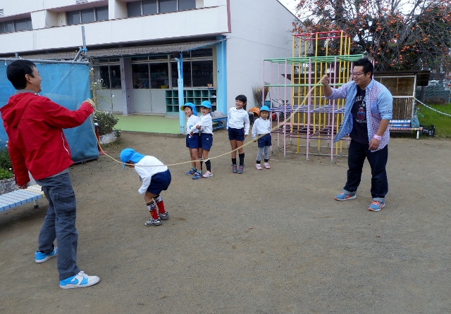 *お父さんやお母さんが回す長縄を元気に飛んで遊びました。