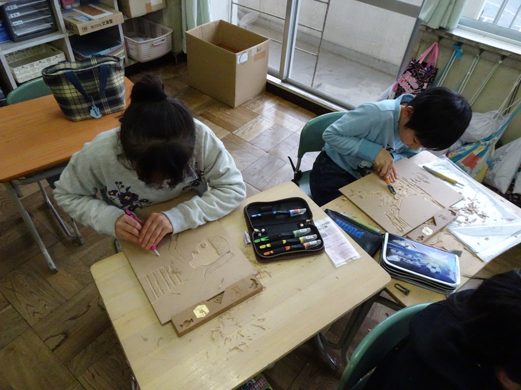 3学期が始まって、もう2週間が過ぎました。寒い日が続く中、子供達は毎日元気よく、勉強に運動に励んでいます。   さて、2学期末から取り組み始めた「ほってすってみつけて」の学習も、順調に完成へと近づいています。