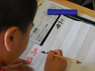 3年生から始まった毛筆ですが、1学期はネームペンで自分の名前