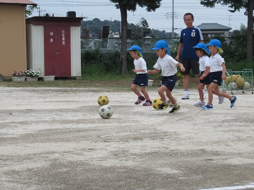 久しぶりのサッカー教室に、少し戸惑う様子の子もいましたが、ボールを追いかけているうちにだんだんと元気が出てきて、みんなで楽しくサッカーができました。