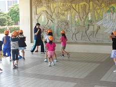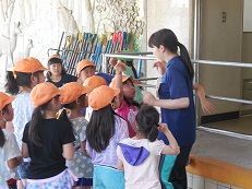 子どもたちは早速実習生を見つけて、話しかけていました。