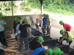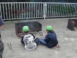 力を合わせてカレーを作りました。火起こしが大変でした。