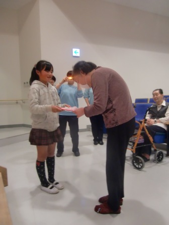 入所者の方に「感動した。」、「良かったよ」と声をかけていただき、子どもたちも喜ばせられて良かったと話していました。