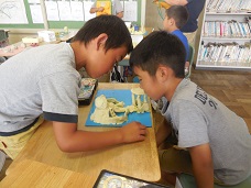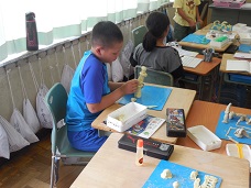 いました。作品ができあがると、友達と作品の説明をし合ったり、