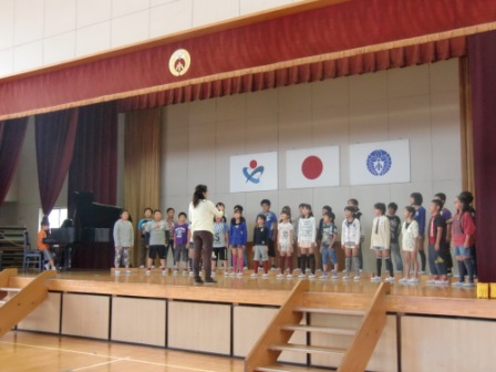 明日の音楽会に4年1組が出場するので、2組、3組に合唱曲を披露してもらいました。