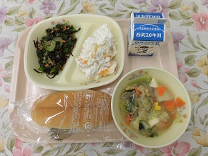 給食室で手作りした醤油ベースの和風ドレッシングと