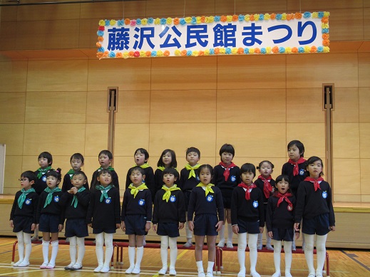 まずはじめに、「園歌」と「世界がひとつになるまで」の歌をうたいました。