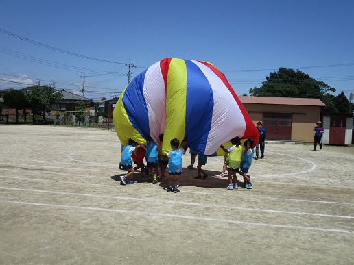パラバルーンの演技では、「夢をかなえてドラえもん」の曲に乗せ、みんなで力を合わせてパラシュートやドームといった大技を披露することができました!