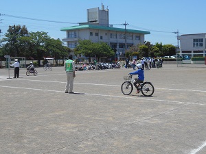 自転車の安全な乗り方を、講義と実技で学びました。