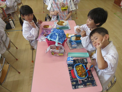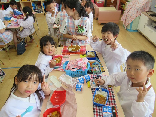 みんなで作ったカレーの味は格別!たくさんおかわりをして、みんなでおいしく食べました。