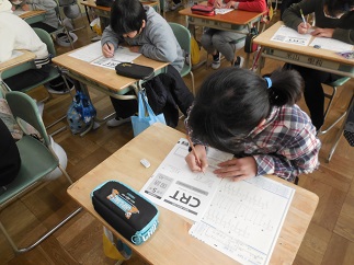 今日は、CRTの国語と算数のテストを実施し、子どもたちは