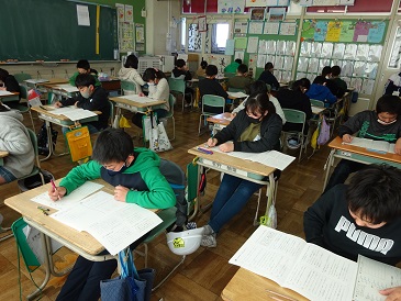 2学期までに学んだ内容のテストに集中して取り組んでいま