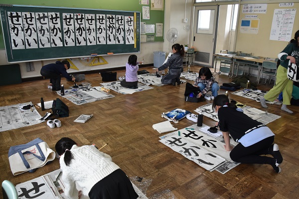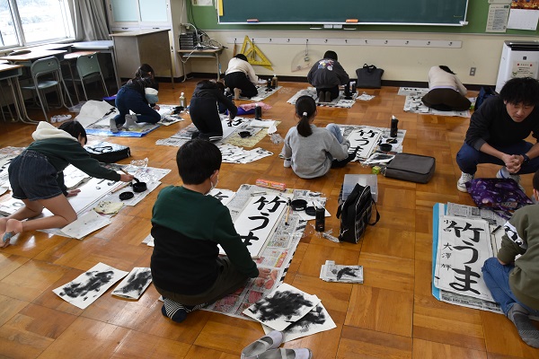 昨日の書きぞめ制作会の作品から、今年度の書きぞめの代表者を決定しました。そして今日から選ばれた子どもたちが、朝や業間、昼休みに多目的室で練習を始めました。短い時間ですが全員集中して取り組んでいました。いい作品が期待できそうです。