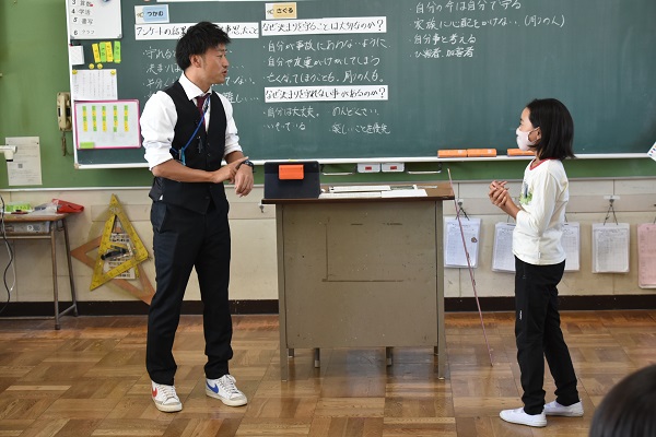 今日は4年1組が交通安全に関する授業を行いました。