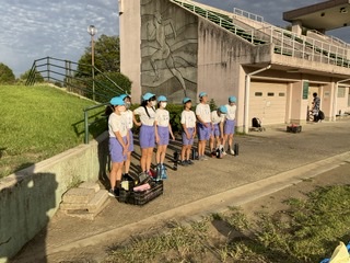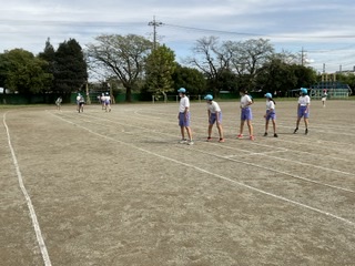 最初の頃は、このようにバトンパスだけの練習をしていました。