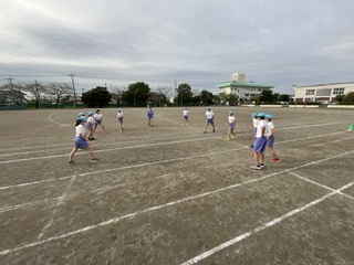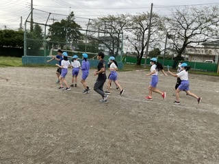 そしてウォーミングアップを兼ねてバトンパスランニング。