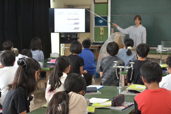 先週に引き続き川の博物館の先生に来ていただき、今日は6年生が出前授業を受けました。