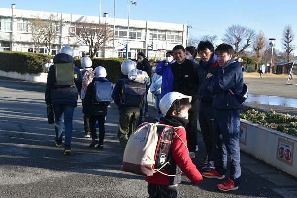 今日は3学期の小・中合同のあいさつ運動を行いました。中学校の生徒会本部役員が来校し、小学生と一緒に校門で登校してくる小学生にあいさつをしました。