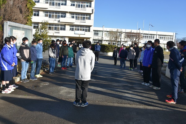 〇中学校の先生もあいさつ 〇今日の運動の振り返り