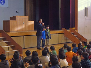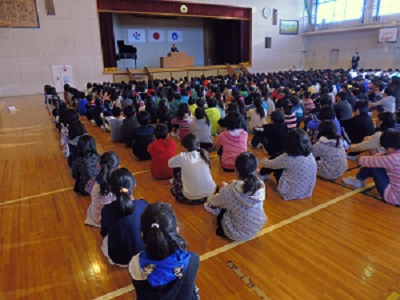 3学期始業式が行われました。 新しい仲間の紹介です。 「保育園が一緒だったよ!」 すぐに仲良くなれそうです。よろしくね。  4年生の代表が「新年の誓い」をスピーチしました。  勉強・運動・生活面、 それぞれの目標をもってがんばります! 校長先生のお話。  たくさんの人が背筋を伸ばして聞いていました。 今日の4年生は、「106人」全員出席です。 すばらしい! 明日は書きぞめ制作会です。 最高の一枚を仕上げよう。 |