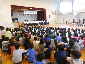 音楽朝会でした。子どもたちには、1年後の自分たちの姿