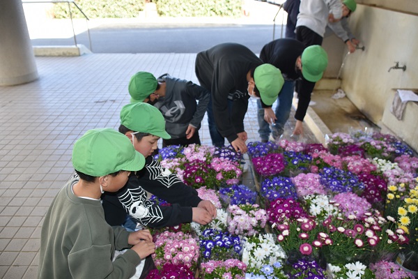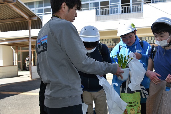 〇6年生は高一農園さんからいただいた水仙をもらって下校 〇5年生は卒業式準備開始