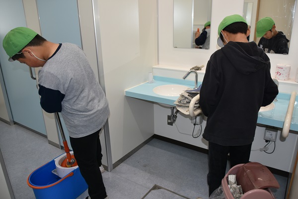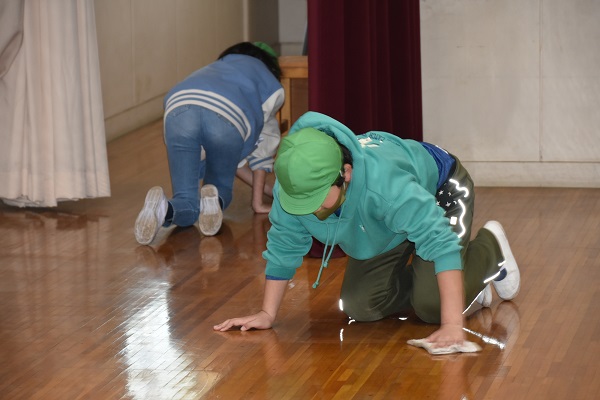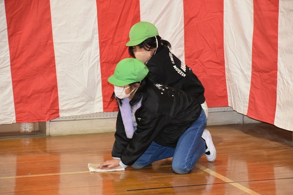 〇体育館の床をピカピカに 〇高所作業は大人の仕事
