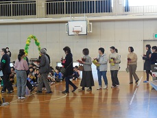 子どもたちは、校歌でお出迎えをして、代表の児童が感謝の気持ち